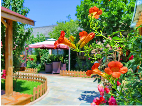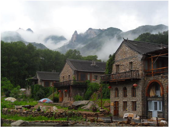 Flowers on Moshang Country House is located at the northern foot of Wuling Mountain, a national AAAA-level scenic spot, and the most beautiful village in Beijing-Miyun Garden Village. Located at 117°30′ east longitude and 40°37′ north latitude, the place where the torch of the Asian Games was collected is the place where the first rays of sunshine in Beijing rose. Here is one step across the "two provinces", and one foot on the "four counties" (Luanping County, Miyun District, Chengde County, Xinglong County), also known as: Jiming County. The village is more than 800 meters above sea level, the annual average temperature is 23 degrees, the water source is abundant, the negative oxygen ions are 5-8 times higher than that of Beijing city, the forest is verdant, the mountains and rivers are within each other, and the forest coverage rate is over 86%. The Wuling Mountain (the main peak is 2118 meters above sea level) stands majestic, and the Andamu River flows gurglingly around the village, which is a "natural oxygen bar".