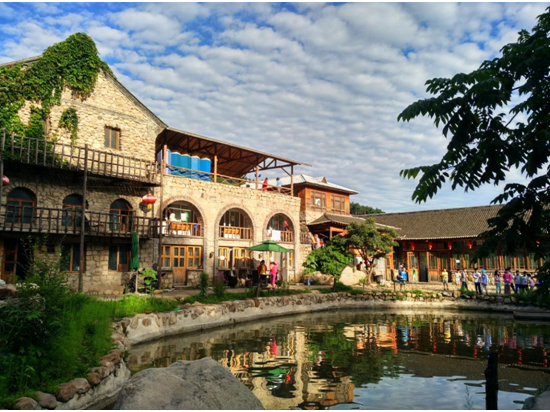 This was built in 2003 by the Yue family from Heilongjiang in a barren valley 800 meters above sea level in Garden Village at the northern foot of Wuling Mountain. In order to protect the local natural environment and ensure the harmony and unity of the building and the surrounding natural landscape, the Yue brothers gave up the popular simple and convenient construction method of reinforced concrete, studied the ancient architectural art of northern China and the characteristics of the old-fashioned houses of local residents, and designed them by themselves. The masonry structure of the local house was completely pebbled into the main wall, and elements such as cornices, lattice windows, western fireplaces, and tatami mats of ancient buildings were incorporated.