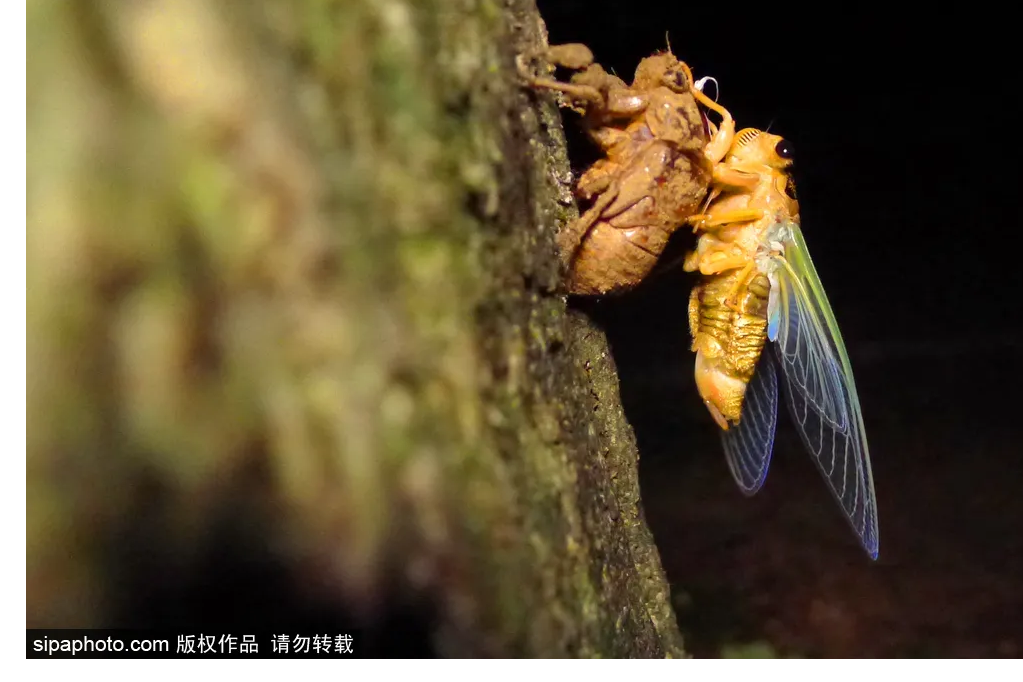 On a summer evening with cicadas chirping, it's meaningful to watch the whole process of the "golden cicada shedding" with a torch.