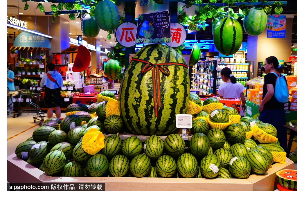 The king of melon weighing about 70 kg appears in a supermarket in Beijing. Would you like to try it?