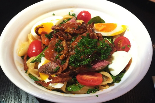 Let’s Pasta is the latest venture into both food and grammatical flexibility by the same minds that brought you Let’s Burger and Let’s Seafood. Let’s Pasta maintains the same greasy spoon format, with the same scribbled font describing the ins and outs of pasta and the same vintage shop knick-knacks throughout. The set up, in the basement of Taikoo Li South, also makes the restaurant feel oddly condensed: perhaps it’s the sense that standing up will knock over one of the too-closely-set tables. Maybe it’s the servers constantly milling about with their walkie-talkies. Or maybe it’s the suspicion that Let’s Pasta took the fast-food route.