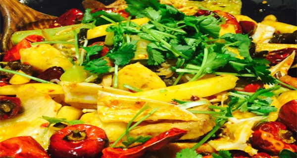 Some say mala xiangguo is a Beijing interpretation of Sichuan food, while others say it’s actually called gan guo, a dry hotpot from Hunan where you can choose from a kitchen sink of ingredients by portion. Choose your heat level from wimpy to nuclear and, soon enough, a big black bowl (from 50RMB) will show up with an alarming pile of two types of red chillies, Sichuan peppercorns, star anise and other spices, and everything you ordered. Use the wooden paddle to toss the ingredients occasionally to mix up the flavors and dip in.
