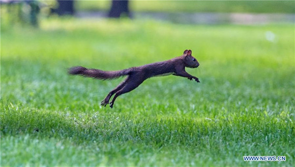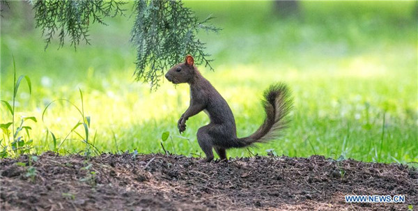 A squirrel searches for food at the Temple of Heaven in Beijing, capital of China, Aug. 1, 2016. (Xinhua/Liu Xianguo)