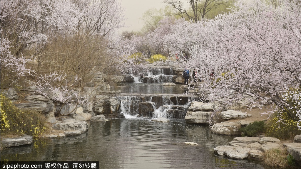 When peach trees bloom, bright, elegant peach flowers are always appealing to a huge number of visitors. With more than 6,000 peach trees, Beijing Botanical Garden is home to the largest variety of peach flowers in the world, with ornamental peach alone covering an area of 100mu. As spring comes, more than 40 varieties of peach flowers are in full blossom. In Beijing Botanical Garden, you can appreciate over 10,000 peach trees of nearly 70 varieties in Ornamental Peach Garden, including red-white ornamental peach, crimson peach, dwarf peach, and Prunus persica Chrysanthemoides.