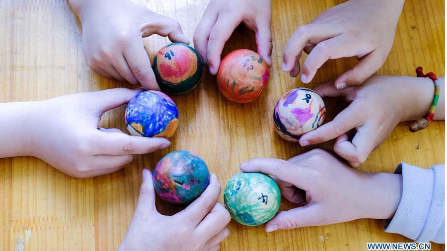 Children participate in an egg knocking competition to mark the upcoming "Lixia", or beginning of summer, at a kindergarten in Lijiaxiang Township, Changxing County of east China's Zhejiang Province, May 4, 2018. "Lixia" marks the seventh solar term on the Chinese lunar calendar. It is a folk custom for local people to greet "Lixia", which falls on May 5 this year. (Xinhua/Xu Yu)