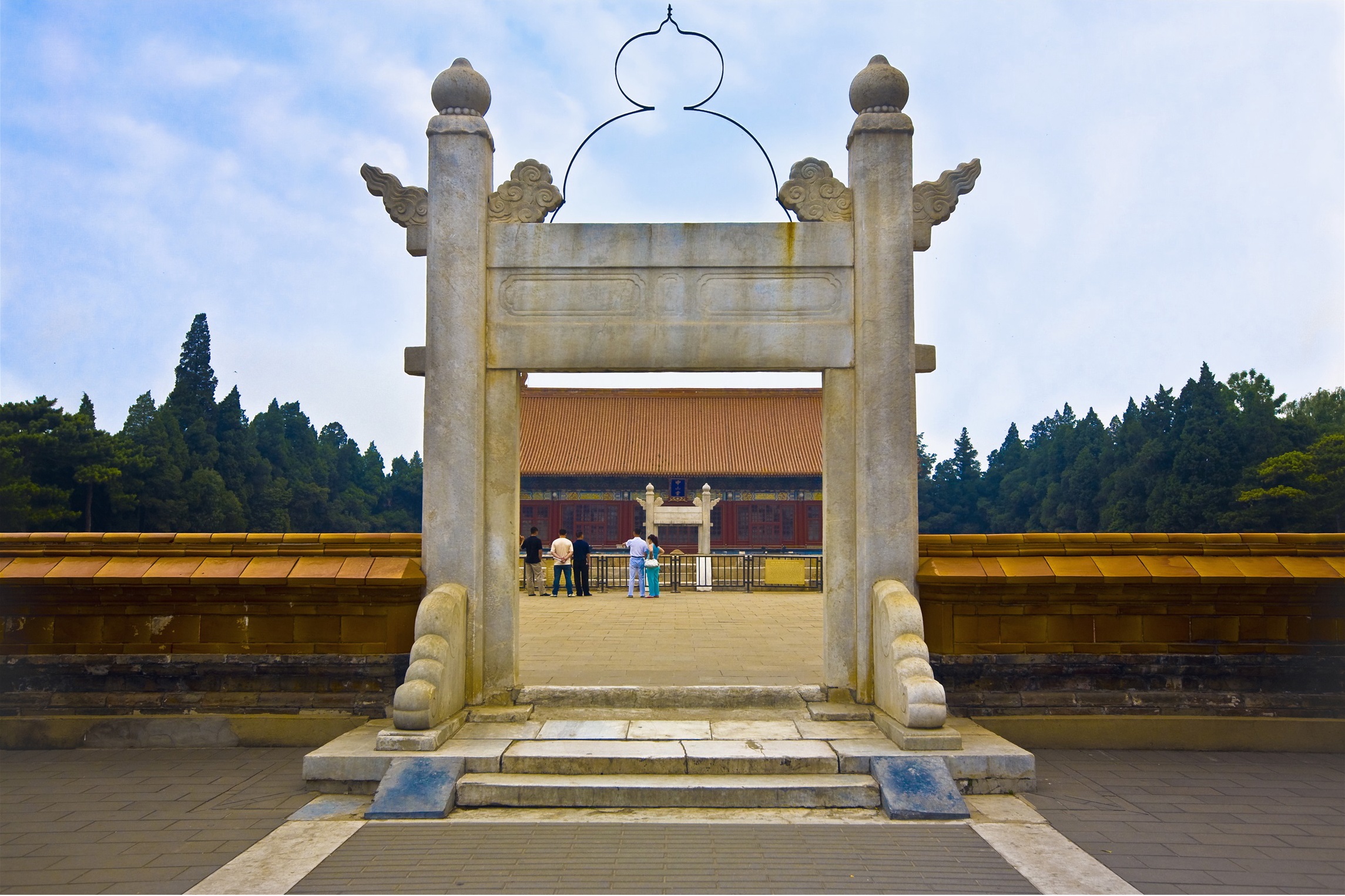 Main buildings are Altar of Land and Grain, Bai Dian (Worship Hall), and subsidiary buildings including Ji Men, Sacrificial Storehouse, Sacrificial Kitchen, Slaughter Pavilion, etc. The top the altar is covered five-colored soil, which is most conspicuous thing, including five colors: yellow in middle, green in east, red in south, white in west and black in north; they symbolize the five elements of metal, wood, water, fire and earth, and five directions of east, south, west, north and middle. There was a square stone in the middle of altar, it was called “Jiang Shan Shi” that can symbolize the country is stable and never dies. The semi-buried soil of the stone column was completely buried latter.