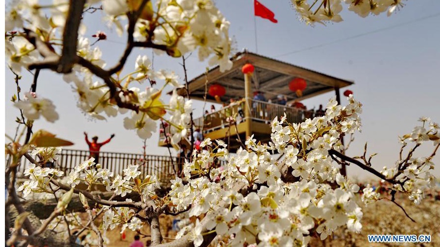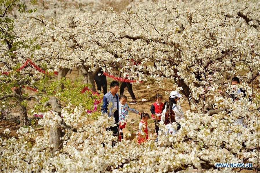 People view pear blossoms at Yinzhuang Village of Wanli Town in Suning County, north China's Hebei Province, April 6, 2019. (Xinhua/Yang Shiyao)