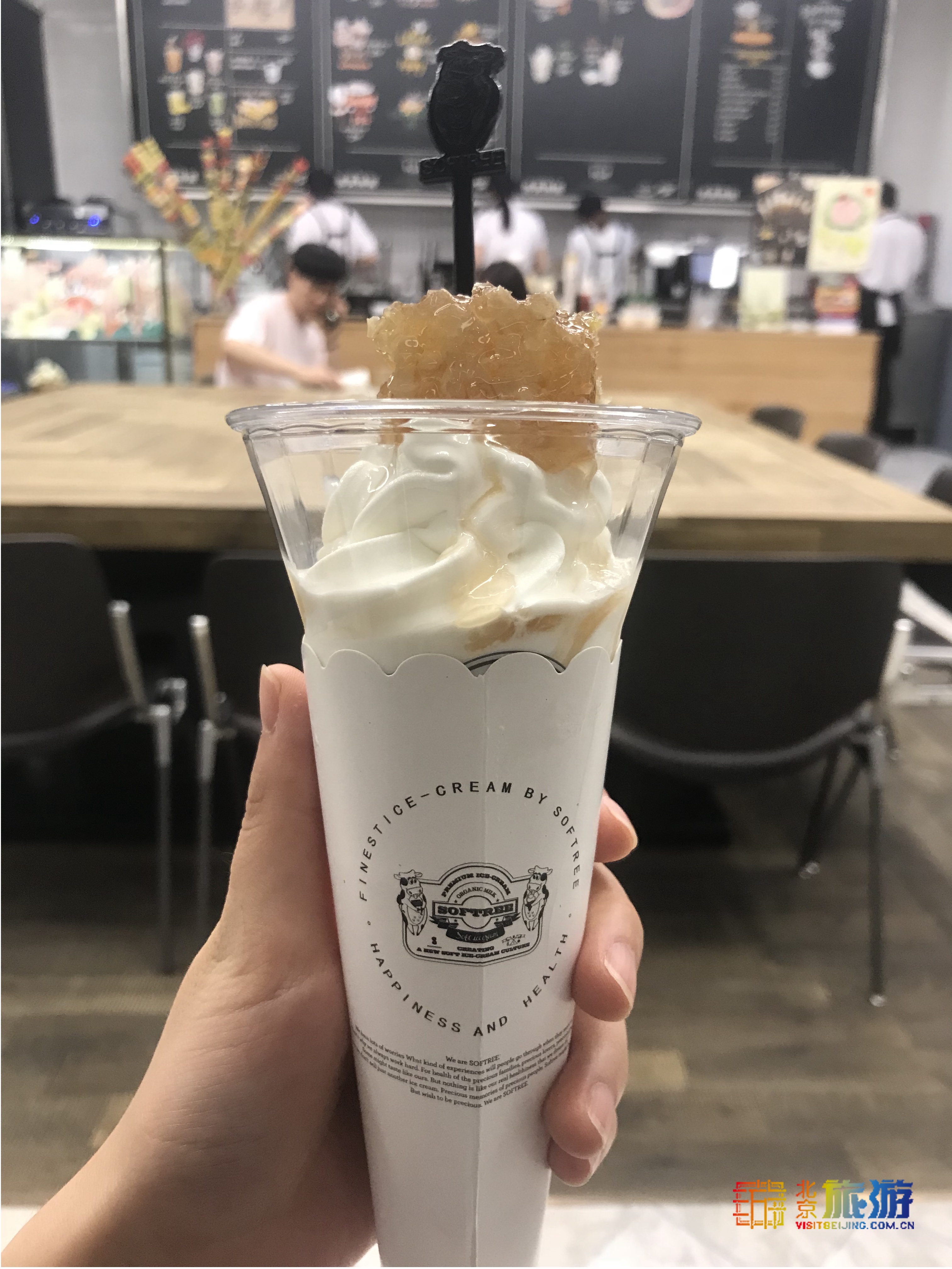 Kiss The Tiramisu features ice cream in an iconic goblet. Its first shop in Sanlitun of Beijing attracted a long line of people at the moment they started business. Its ice cream is always freshly prepared as ordered, and the fruit ingredients are preserved by themselves. It offers totally 5 kinds of flavors and recently brings out a sweet chocolate tiramisu taste. In addition to goblet-contained ice cream, it also sells signature ice cream latte and drinks.