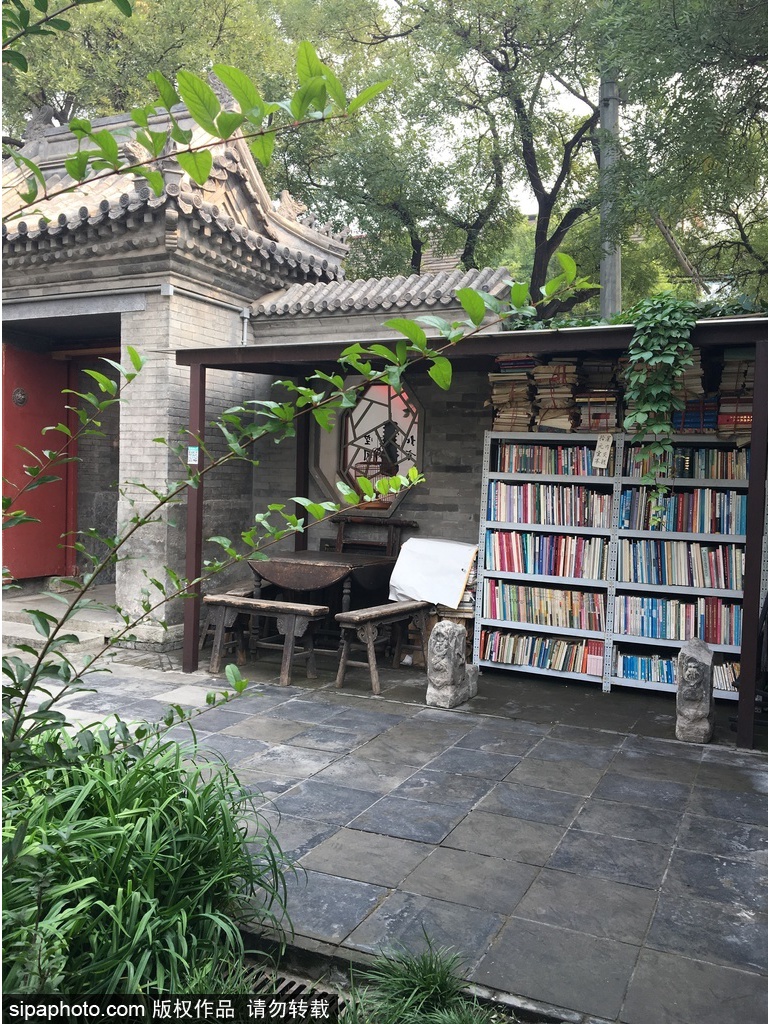 Zhengyang Bookstore is a unique bookstore in downtown Beijing. You can find it under a striking ancient pagoda of the Yuan Dynasty at the bustling Xisi intersection. The Pagoda of Monk Wansong, an antique and elegant nine-storey octagonal pagoda, is the only remaining brick pagoda in the inner city of Beijing. It was quadrangle dwellings filled with old stuffs like gate piers, door planks, tables and chairs. There are shelves of old books inside the courtyard.