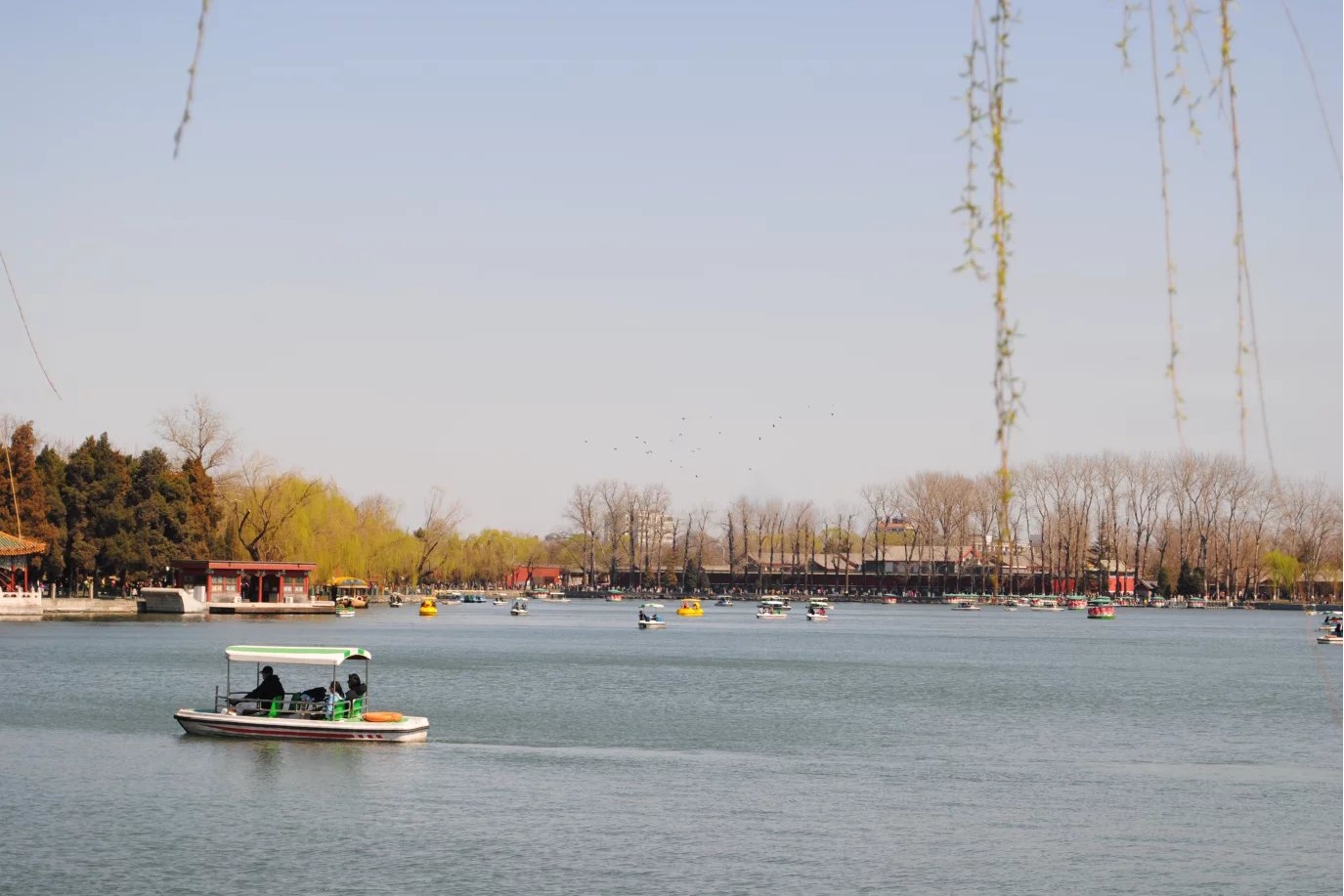 In winter, Bei Hai is the gathering place for migrant birds, such as the rare variety, Anas Formosa. The sunset lights and mandarin ducks contrast finely with each other on the lake surface.