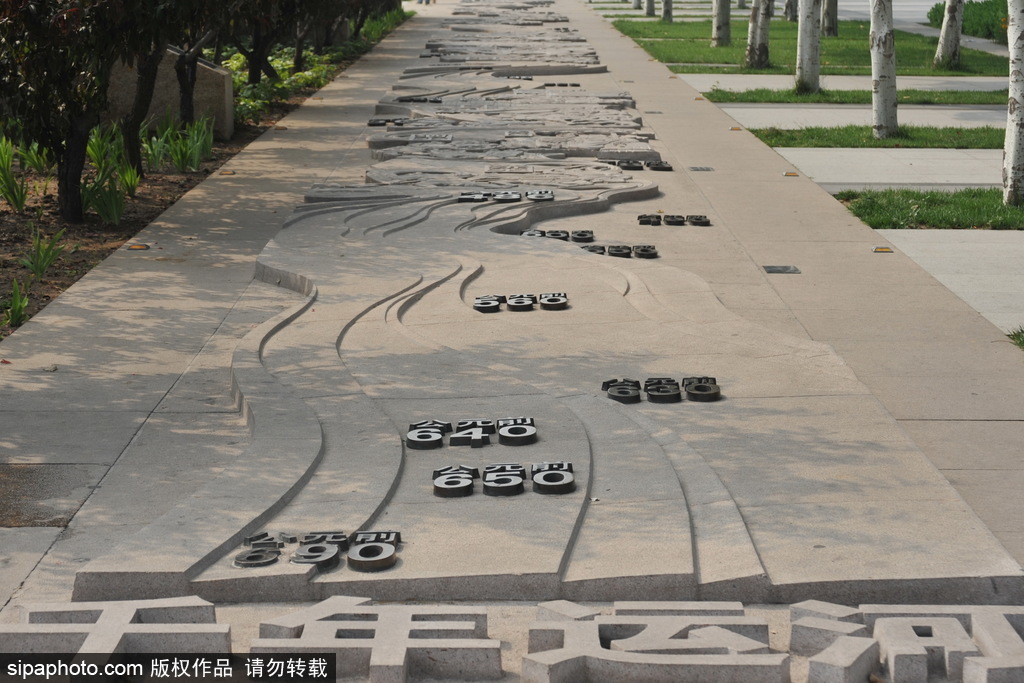 Moving forward, we see about five or six hundred meters of granite stone sculptures in the middle of the main road, called "Millennium Canal", recording the history of the canal.