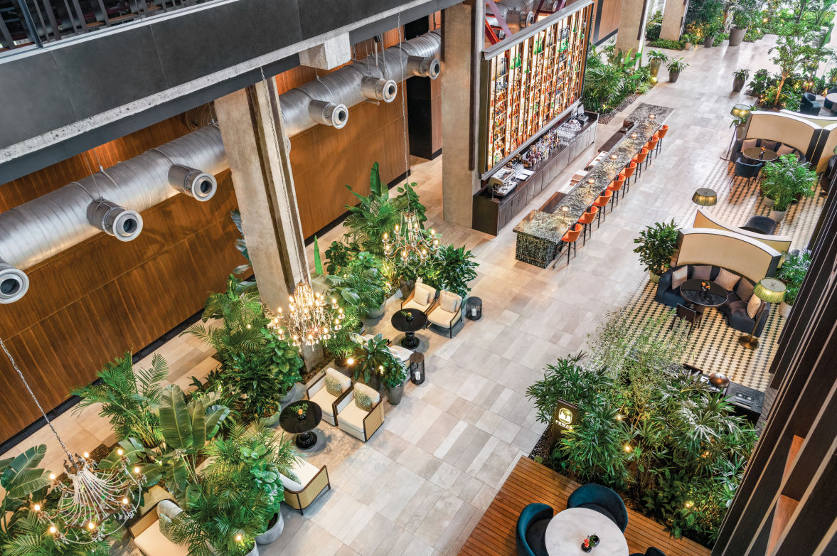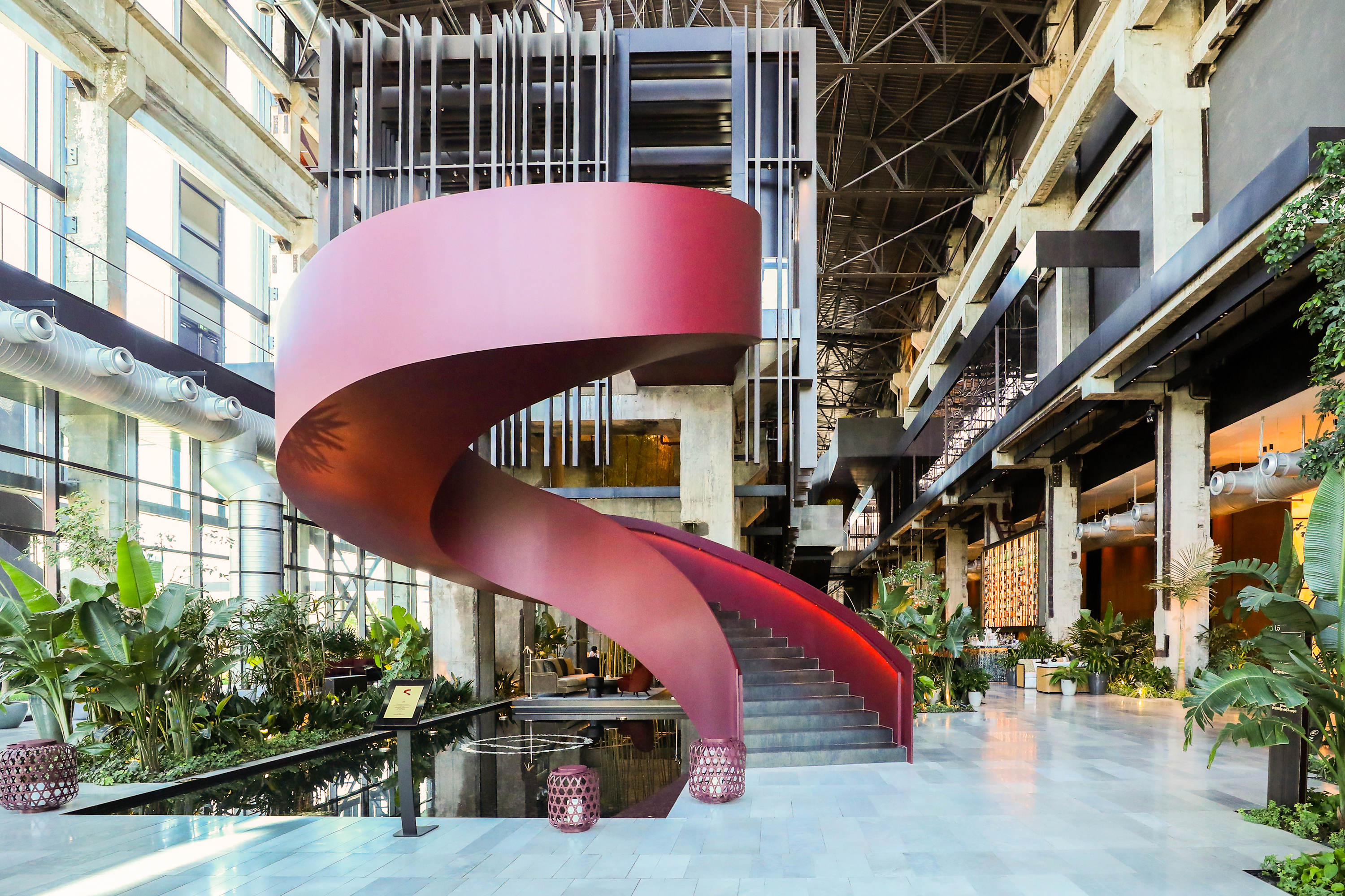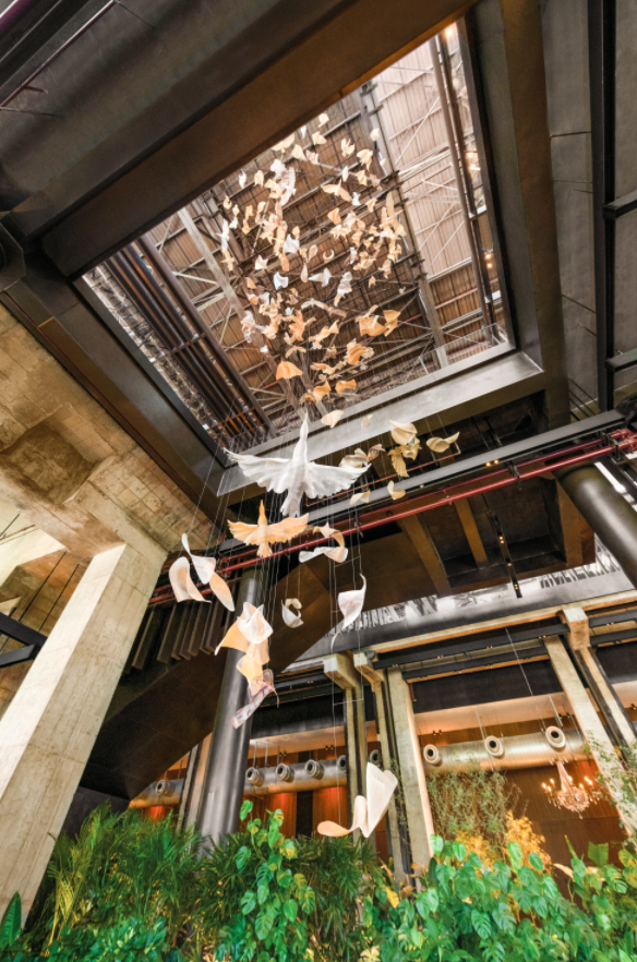 With views of Shijingshan District and Qunming Lake, the main entrance of the hotel is dominated by an industrial style of steel, and the distinctive red spiral staircase brings a touch of color. In the lobby atrium, birds hovering down from the sky add a bit of natural and romantic atmosphere. Decorated with birds and a large number of green plants, the hotel lobby looks like an indoor garden.