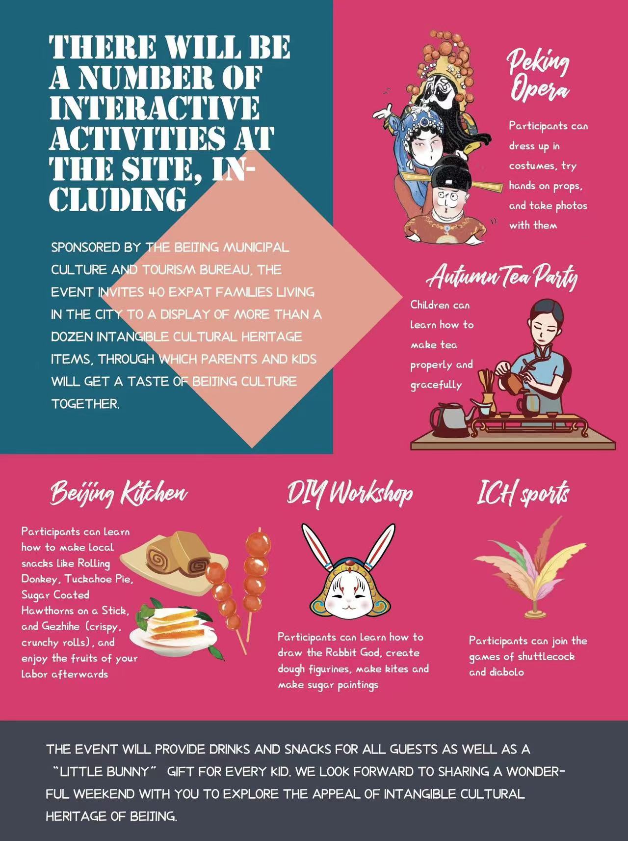 At the same time, there is also a beautiful tea break provided on site! Every child who participates in the event will receive a cute souvenir from "Little Bunny"! Come and enjoy the wonderful ICH activities in Beijing's golden autumn weekend. Looking forward to meeting you and your family on site!