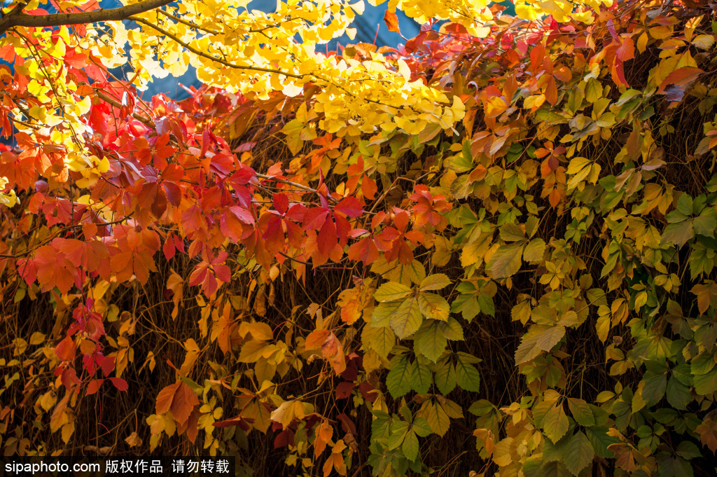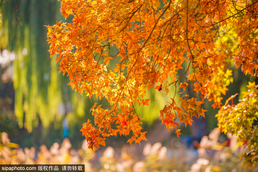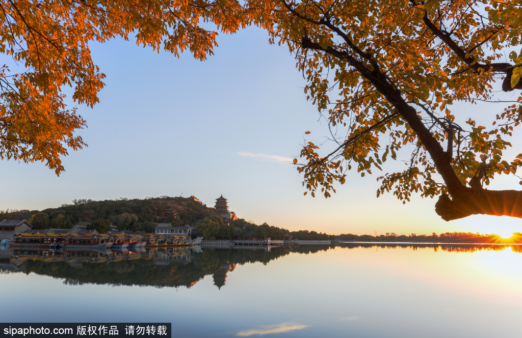 In autumn, the Summer Palace is as tranquil and picturesque as a painting, with its shimmering lake and mountain scenery. On both sides of the Back Creek, the leaves of trees such as the big-leaved wax tree, the maple, and the small-leaved elm have already turned into a splendid display of red, orange, and yellow. The varying shades of the leaves and the autumn sunlight reflecting on the river surface create a beautiful and enchanting scene.