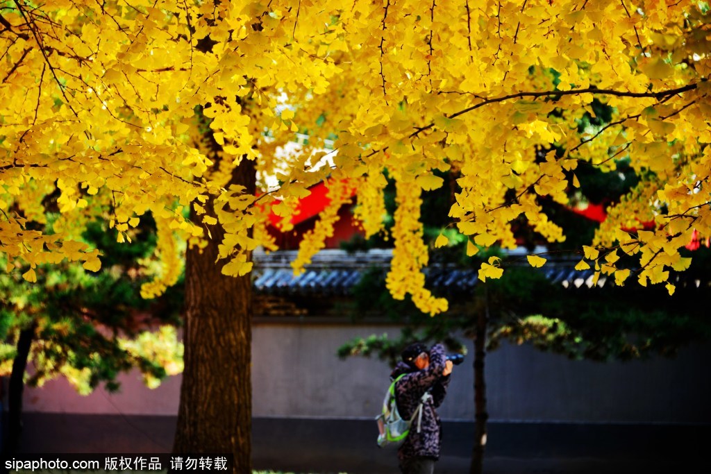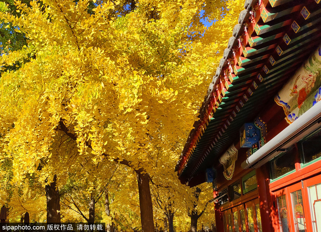Zhongshan Park is a great place to see ginkgo trees, especially the ginkgo avenue inside the South Altar Gate. The ginkgo trees here are set against the blue sky, red walls, and tiles, creating a sense of "Beiping's autumn" described in literature and adding a unique charm to the Altar of Land and Grain.