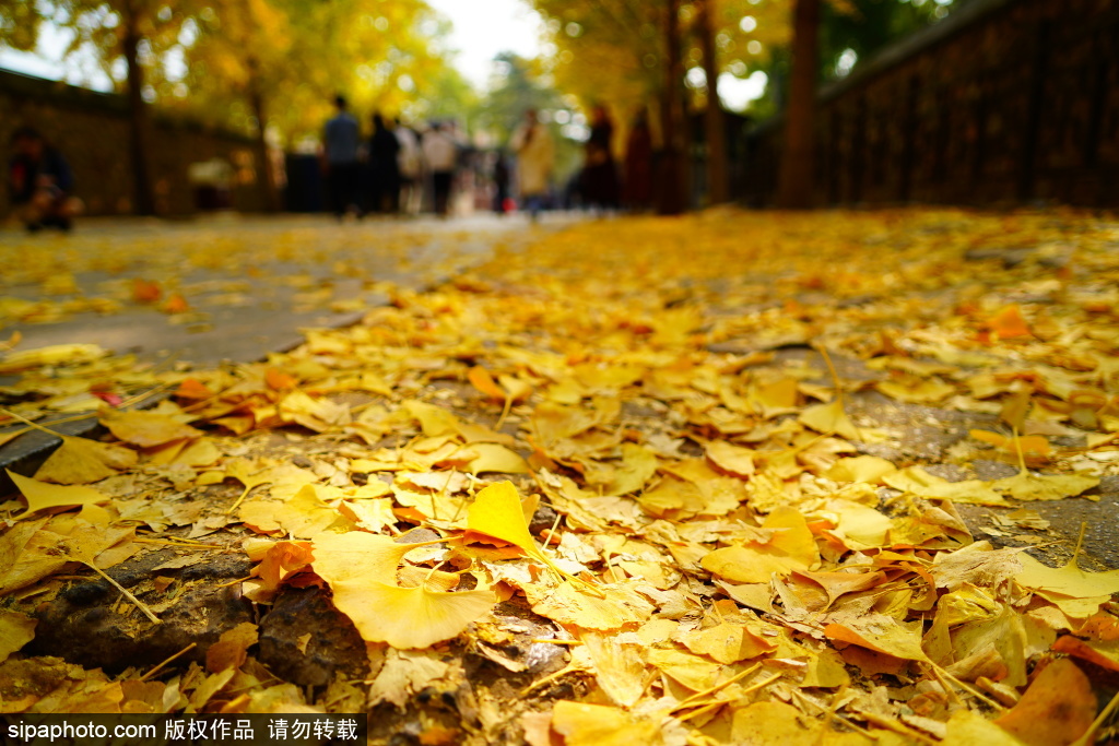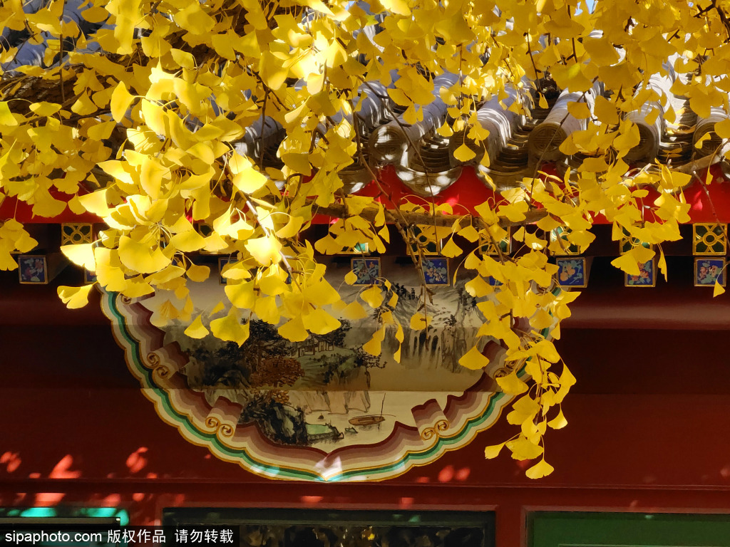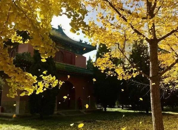 The ginkgo trees on the west side of the South Gate are particularly beautiful. The ginkgo forest is planted along the corridor and extends westward to the lotus pond. The tall golden branches and leaves interweave into a dense network of leaves, and when they fall to the ground, they create a warm and romantic atmosphere.