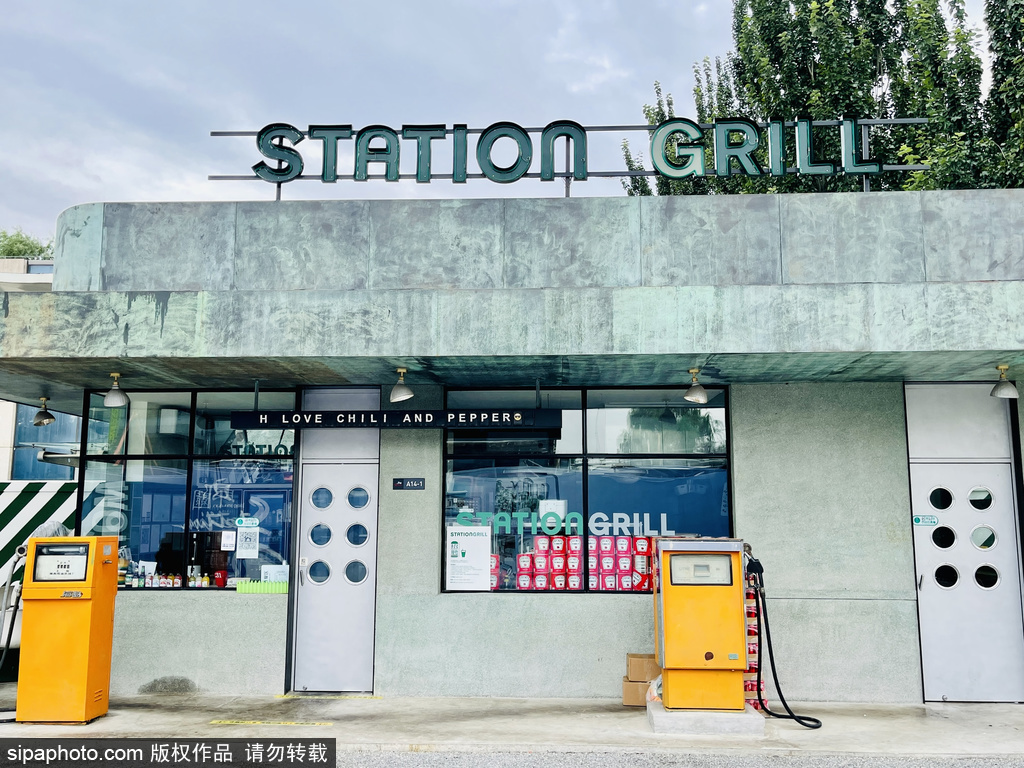 Inside the park, there are many intriguing brands. For instance, a boutique handmade burger shop, designed and transformed resembling an old American roadside gas station. Situated near Jiangfu Park, the entire store's light green color matches well with the park environment.