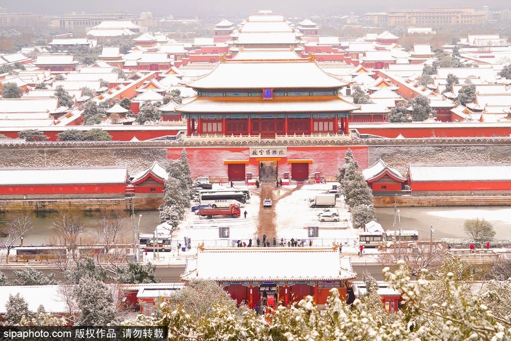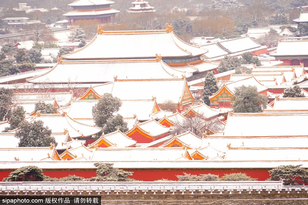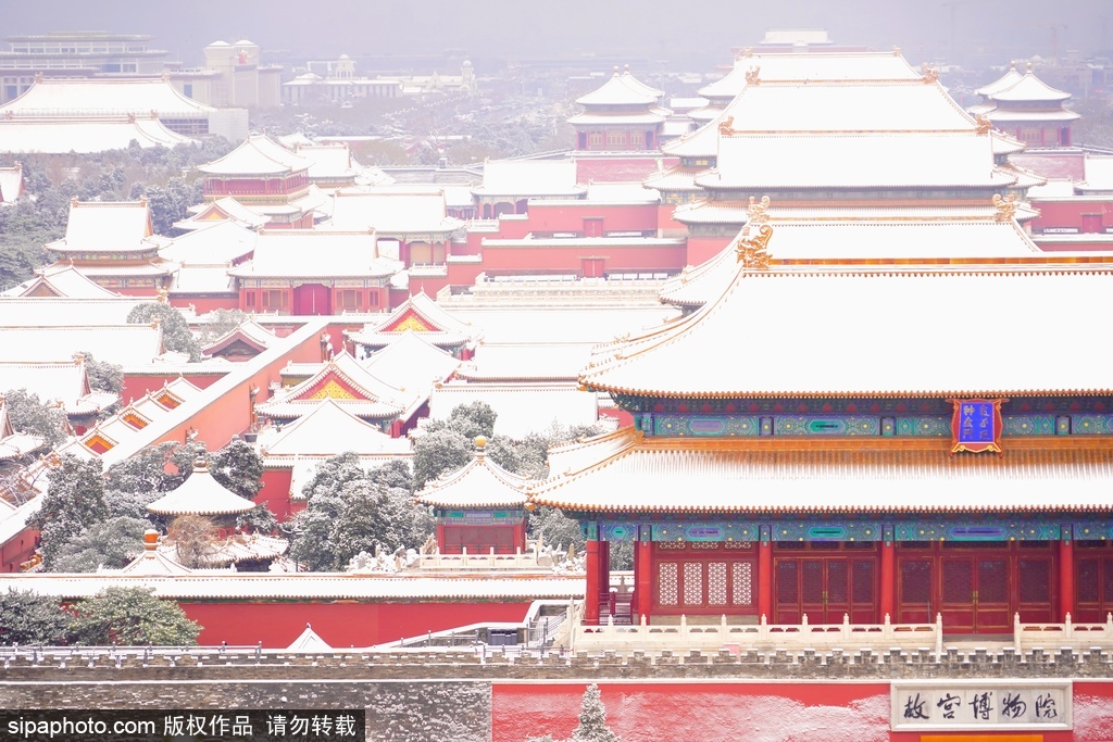 The Forbidden City, an ancient imperial palace full of historical and cultural heritage, is covered in white snow, presenting a beautiful scenery like a painting. Snowflakes dance lightly and fall on every inch of the land, and the red walls and white snow complement each other, like a beautiful ink painting.