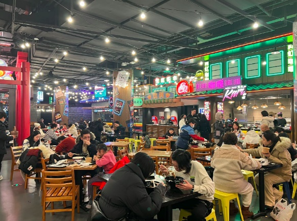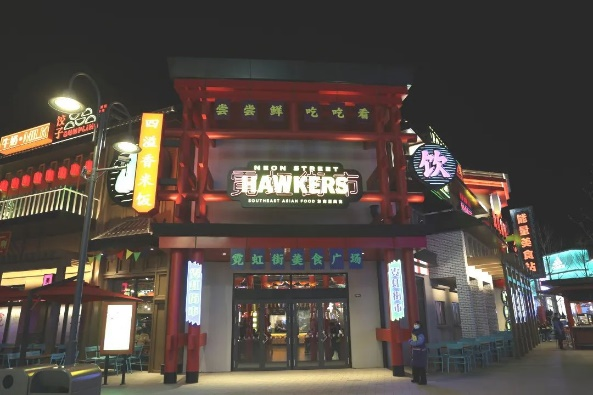Not far away, the Neon Street Hawkers are also full of tourists eager to taste Southeast Asian cuisine. The various neon lights inside the restaurant create a dazzling spectacle. Visitors can choose from a variety of snacks such as Vietnamese pho, fragrant rice, and stir-fried noodles. "These days, the number of customers has been high. Please find a seat first, and when your order number is called, you can go to pick up your food," said the counter staff.