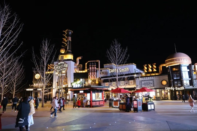 Newly opened stores and flagship stores line the CityWalk, and in the evening, many popular restaurants have long queues. In addition to tourists visiting the park, there are also local residents who specifically come for the restaurants. "I drove for nearly an hour just to come here and have a meal at the chocolate-themed restaurant with my friends," said Mr. Huang, a resident of Beijing.