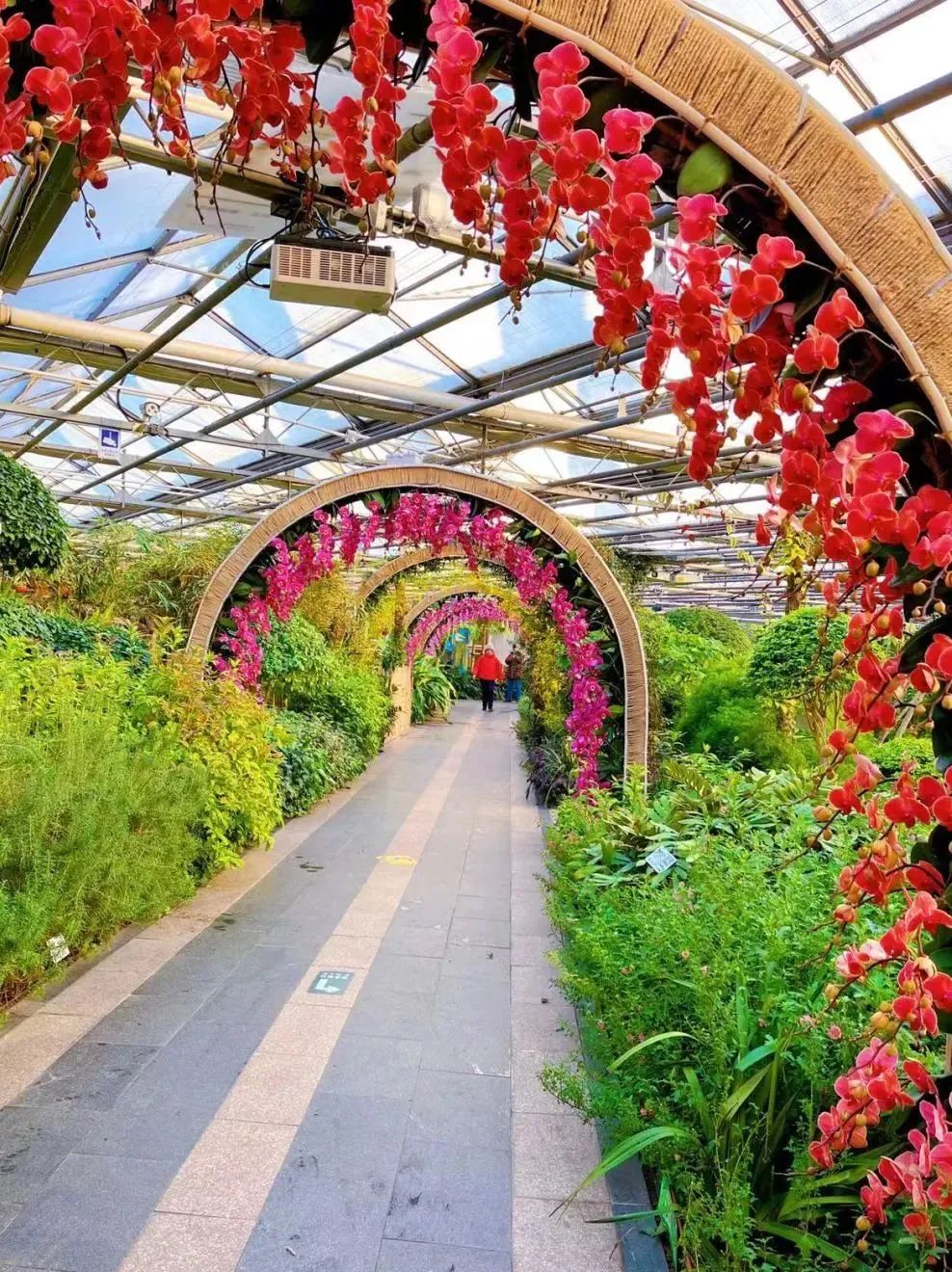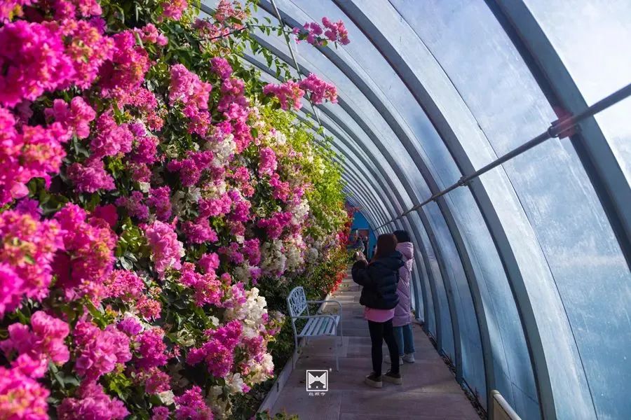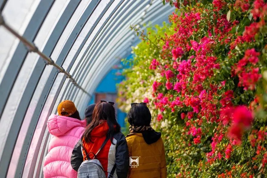 Walking in the warm flower pergola, bright colors, fresh fragrance, and abundant sunlight interweave, creating a unique winter scenery.