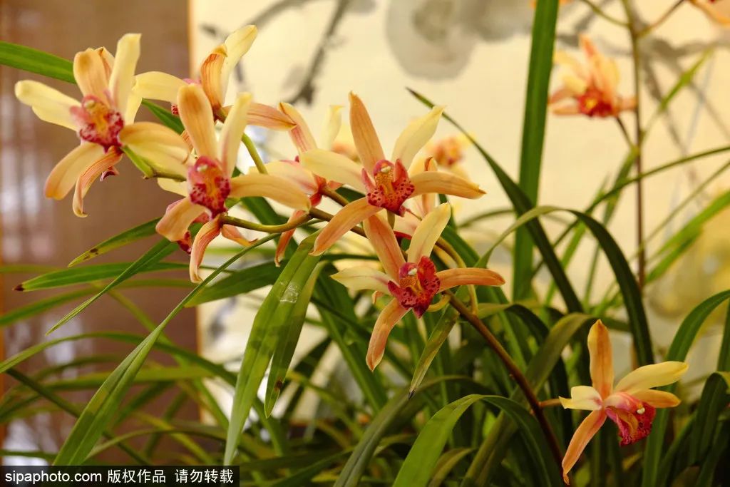 In the high-quality flower hall, a "Flower Corridor" composed of 500 pots of orchids attracts many visitors to take photos. The orchid boutique exhibition is located in the sunken square of the high-quality flower hall, featuring exquisite orchids such as red hibiscus orchid and Jian orchid, creating a courtyard filled with fragrance and beauty.