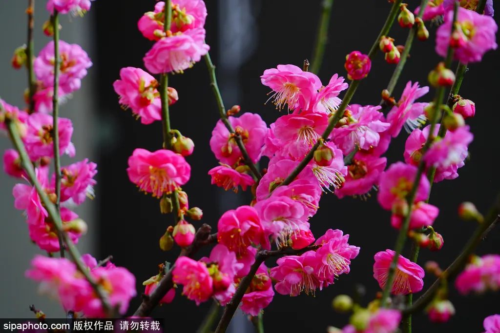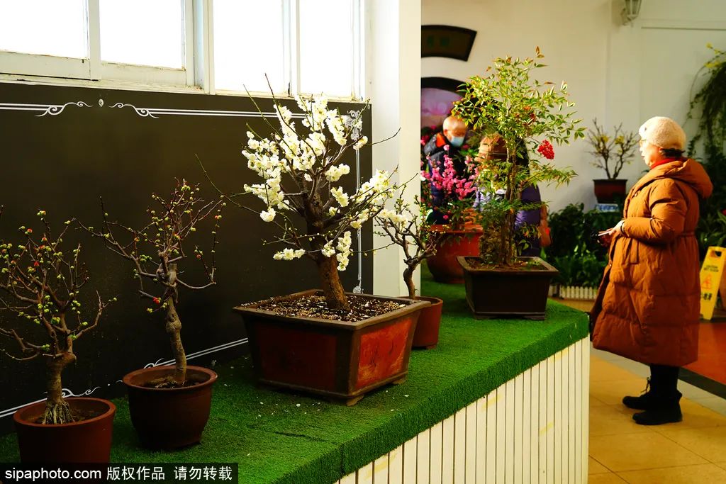 Currently, the Tang Flower Dock at Zhongshan Park is hosting the "Overture of Spring" New Year's boutique flower exhibition, showcasing azaleas, wax plums, plum blossoms, and winter jasmine, among other flowers. Indoor leafy plants like pineapple and North American holly are also on display, totaling more than 30 species and over 1000 pots.