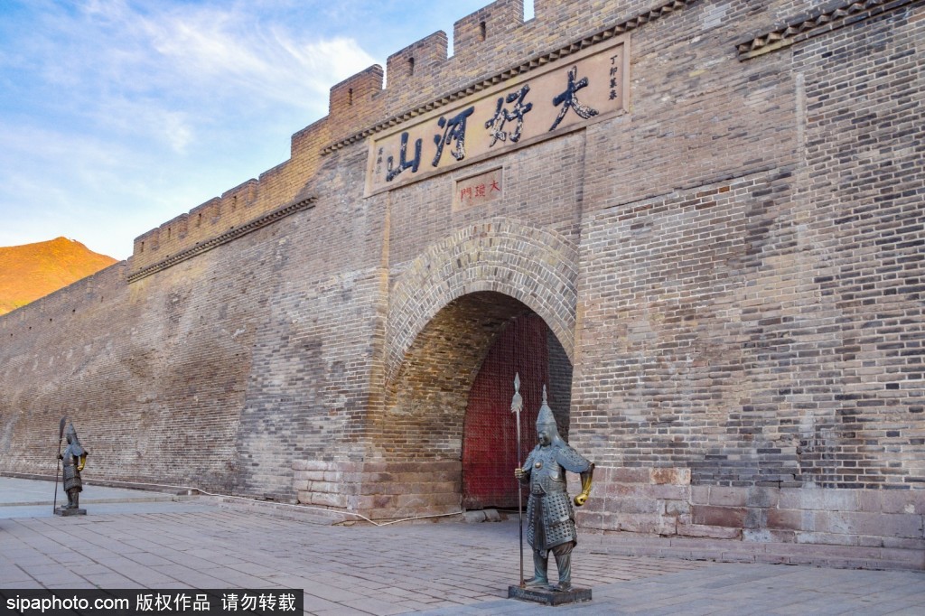 The Dajingmen Great Wall is situated between the East and West Taiping Mountains in Zhangjiakou City, Hebei Province, spanning the Qingshui River. It is a well-known and strategically important pass of the Great Wall, historically contested by military strategists. The Great Wall in the Dajingmen area was constructed in the 21st year of the Ming Dynasty's Chenghua era, while the Dajingmen gate itself was built in the first year of the Shunzhi era of the Qing Dystany. It is the only pass of the Great Wall named after a gate and serves as a landmark of Zhangjiakou City. Inscribed on the lintel are the bold and vigorous characters "大好河山" (da hao he shan), each over a square meter in size, displaying a grand and imposing spectacle.