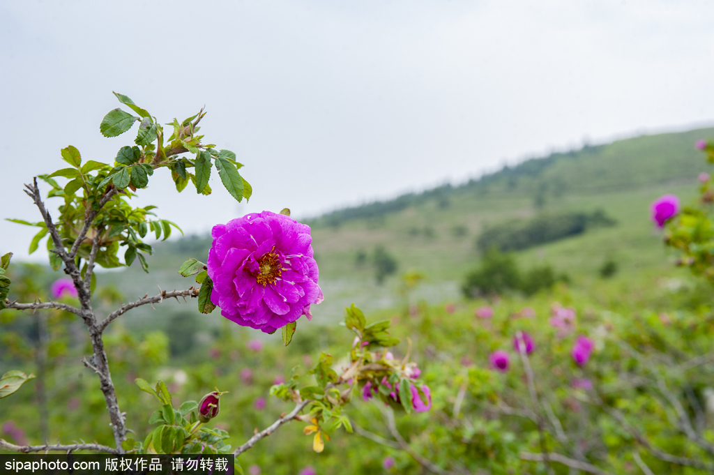 One of the famous "Twelve Sceneries of Miao Mountain," the "Purple Ying with Dew," praises the roses of Miaofeng Mountain. Every June, thousands of acres of roses bloom, transforming Miaofeng Mountain Forest Park into a world of flowers. Everywhere you look, there are purple-red roses exuding an enchanting fragrance, captivating visitors and making them reluctant to leave. Walking through the hundred-acre meadow, you can enjoy the fresh air and pleasant climate, with wildflowers such as Potentilla fruticosa, Rosa acicularis, lilacs, anemones, and lilies adorning the landscape. Miaofeng Mountain Forest Park is a destination that combines nature, health, leisure, flower and fruit viewing, mountain vacations, and summer retreats.