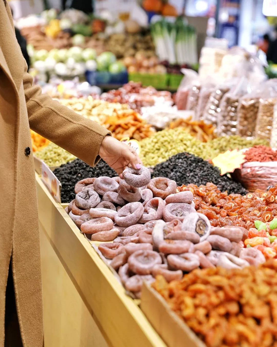 The market offers not only fruits, vegetables, meat, eggs, condiments, beverages, snacks, and staple food, but also covers stands that sell fresh flowers, plants, accessories, beers, and that process seafood. There are also cooked food stalls, dairy stations, dried fruit shops, etc.