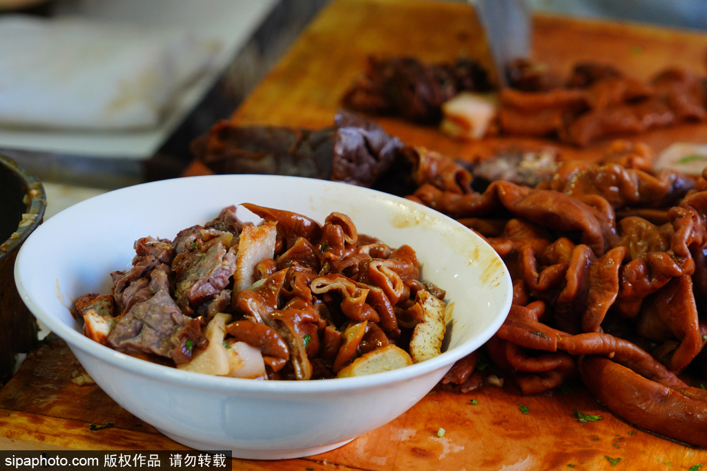 In addition to Douzhi, old Beijingers also enjoy braised foods and those with soup. The braised meatballs and miantcha (seasoned millet mush) are particularly popular among customers.