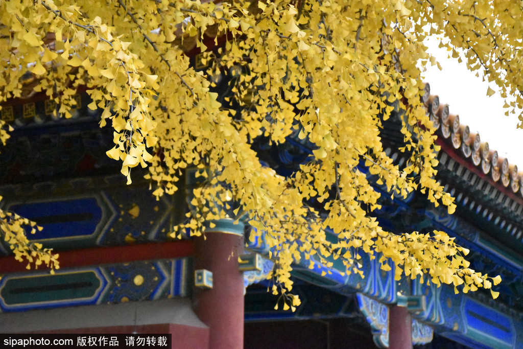 Jingshan Park is a nearby popular destination with several attractions, including Qiwang Pavilion, Wufang Pavilion, Shouhuang Hall, Yong’en Hall, and the Peony Garden. The Wan Chun Pavilion sits at the highest point of Beijing's central axis, offering an unparalleled vantage point. From the mountaintop, you can see the entire Forbidden City to the south, bathed in the orange glow of the setting sun, making it exceptionally beautiful. To the west, you can view Beihai Park, with its green trees and white pagoda creating a delightful contrast. In autumn, when the leaves turn yellow, the whole area transforms into a picturesque fall scene, with the dry yellow leaves fluttering through the air like beautiful yellow butterflies, doubling the beauty of Jingshan Park. The red walls, yellow tiles, blue sky, and ginkgo trees create a scene so breathtaking that you can't bear to blink. Visiting Jingshan Park in autumn, although you're not looking directly at the ginkgo trees, the vibrant fall yellow and the red walls of the Forbidden City complement each other beautifully, adding a deeper layer of historical and emotional resonance.