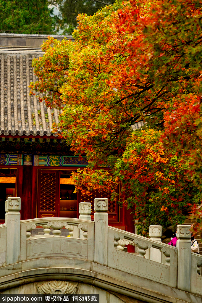 Fragrant Hills Park is home to numerous cultural relics and ancient sites, with pavilions and towers scattered among the mountains and forests like stars. Here, you can find the 'Snow-capped Western Hills on a Clear Day', one of the Eight Famous Scenes of Yanjing; the Biyun Temple featuring architectural styles from the Ming and Qing dynasties; the wooden and gilded 'Five Hundred Arhats', the only one of its kind remaining in China; the temple 'Zongjing Dazhao' which was used as a palace to welcome the 6th Banchen Lama; and the ancient and elegant courtyard “Study of Reading Heart” (Jianxin Zhai) with distinct characteristics of southern China. Fragrant Hills Park boasts a diverse array of trees, with forest coverage rate up to 96%. It is home to over 5800 ancient and famous trees, accounting for a quarter of Beijing’s urban area. Known for its high concentration of negative oxygen ions, Fragrant Hills is a natural oxygen bar and a popular summer retreat. The park’s rich landscape includes mountains, famous springs, ancient trees, and vibrant red leaves, making it a renowned destination. The red leaves of Fragrant Hills are famous both domestically and internationally, and were recognized as one of the 'Sixteen New Scenic Spots of Beijing' in 1986, exuding the city’s most intense autumn colors. The red leaves at Fragrant Hills encompass 8 different species across 14 tree varieties, totaling 140,000 trees spread over approximately 1400 acres—a truly spectacular sight.