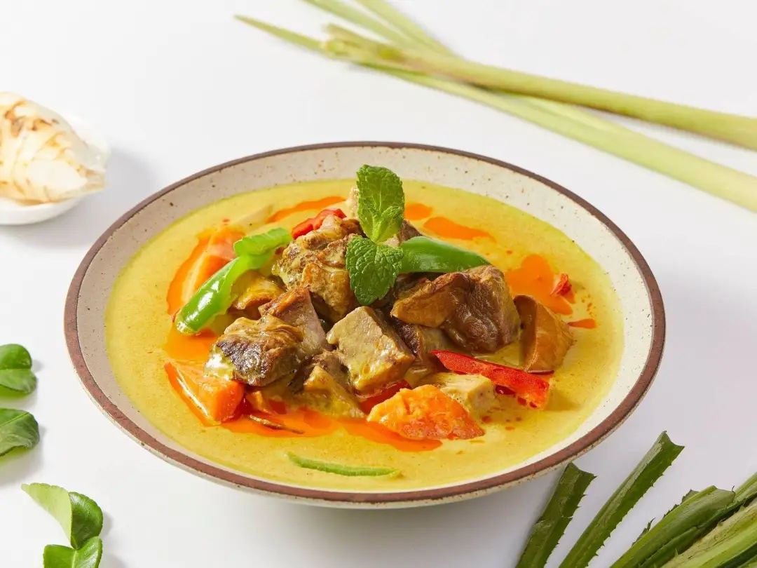 Thai cuisine is known for its balance of sour, spicy, salty, sweet, and bitter flavors, with seafood, fresh fruits, and vegetables. Signature dishes include Tom Yum Soup, Tom Kha Gai (Thai Coconut Chicken Soup), Curry Fish Cakes, Green Curry Chicken, and Khao Niew Mamuang (Sticky Rice Cooked with Coconut Milk and Served with Mango).