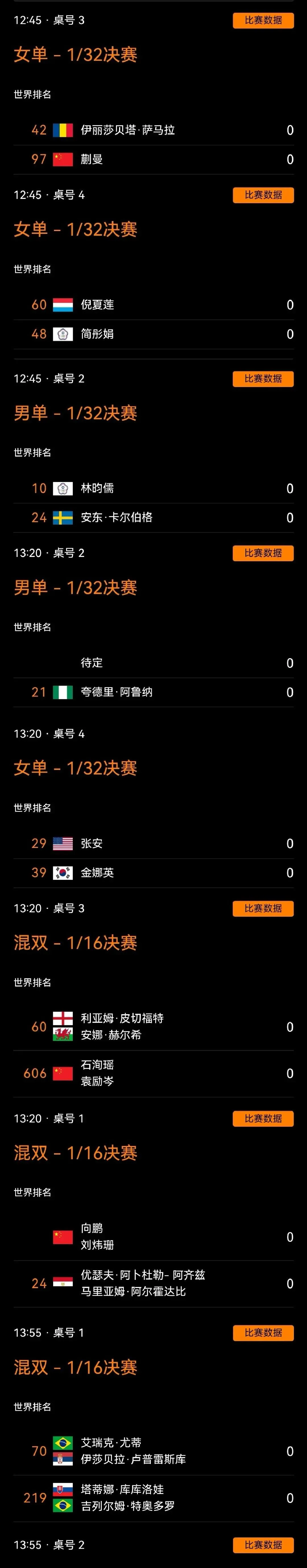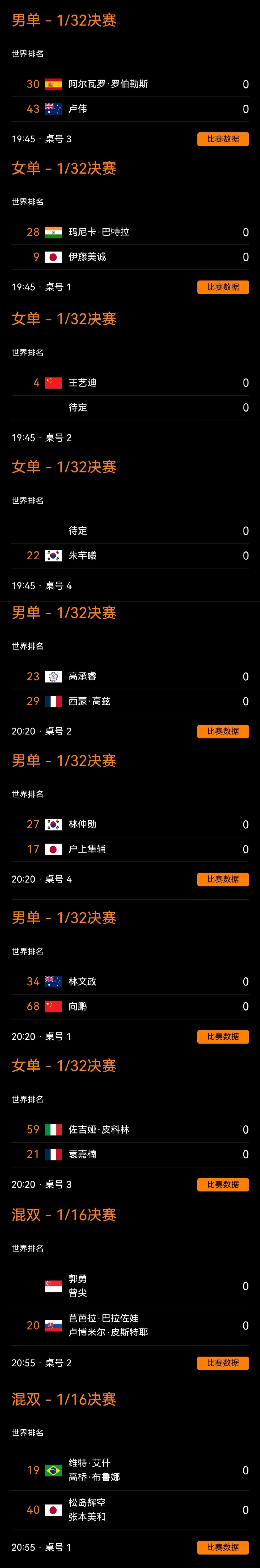 The following is the detailed match schedule (please refer to the "WTT World Table Tennis Professional League" WeChat mini-program for specifics).