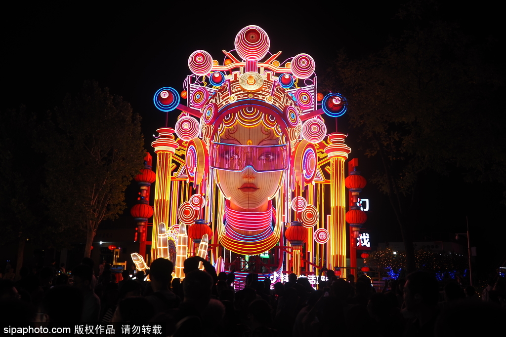 As night falls, the Beijing Garden Expo Park, located by the Yongding He in western Beijing, lights up brilliantly. Over 200 lantern installations across nine themed zones of the largest lantern festival in the capital's history, the "Jingcai Lantern Festival," are illuminated simultaneously. The melodious tunes of traditional opera and the dazzling lanterns complement each other, creating a cultural feast that intertwines both visual and auditory experiences.