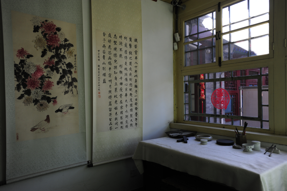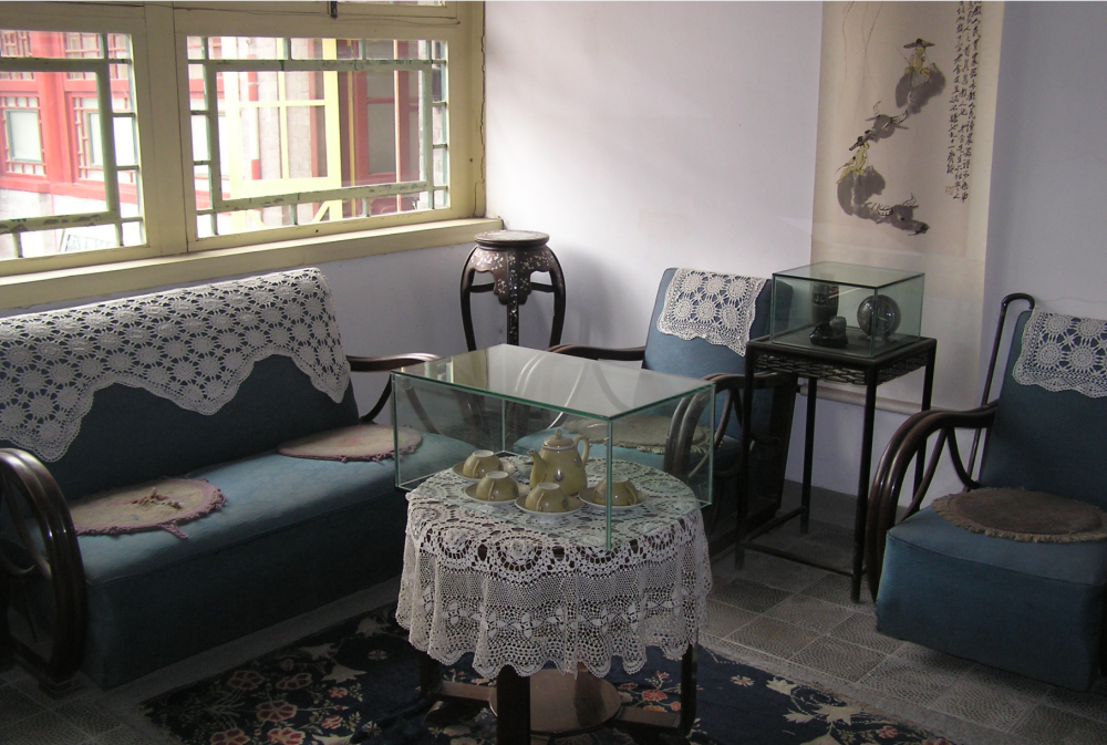 In the three main north-facing rooms, two serve as a living room, and the one at the east end is the wife's painting studio and bedroom. The east ear room is the bathroom, equipped with a flush toilet and bathtub. The west ear room is Mr. Lao She's study and bedroom, where he spent his later years for 16 years. During this time, he created 24 dramatic scripts and two novels, including the acclaimed works Longxugou (Dragon Beard Ditch), Willow Tree Well, Looking West to Chang'an, Teahouse, Female Sales Clerk, Family Happiness, and Under the Red Flag. The play Dragon Beard Ditch earned him the honorable title of "People's Artist." The play "Teahouse" has become a repertoire of the Beijing People's Art Theatre and represented Chinese drama abroad for the first time, enjoying a high reputation in Europe, America, and Asia.