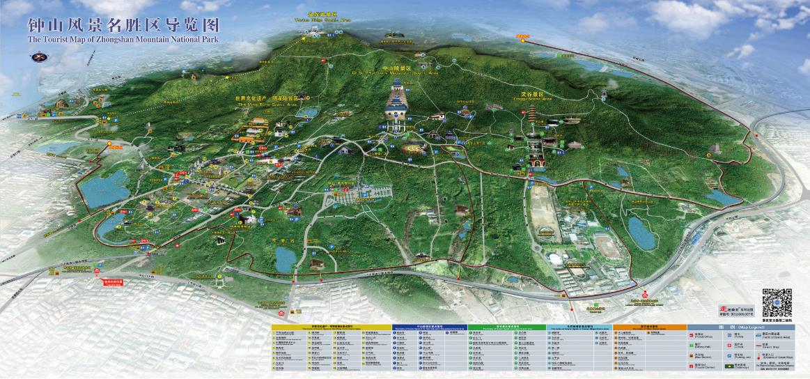 Zhongshan Mountain, anciently known as Jinling Mountain, comprises three peaks arranged side by side from east to west. Standing in the eastern suburb of the city, it is the main peak of the Ningzhen Mountain Range. It stretches 7 kilometers east to west and 4 kilometers wide at its broadest point, with a continuous expanse of over 10 kilometers. The towering Zhongshan Hill is covered by a vast sea of green pines and cypresses, amidst which lie more than 200 historic sites. Zhongshan Mountain National Park is a renowned scenic spot in China, featuring major attractions such as Dr. Sun Yat-sen"s Mausoleum Scenic Area, Ming Xiaoling Mausoleum Scenic Area, Meihua Hill, Linggu Temple Scenic Area, Zijinshan Astronomical Observatory, Zhongshan Botanical Garden, Beijige Observatory, Jiming Temple, as well as Xuanwu Lake, Fuguishan, Jiuhuashan, Xiaohongshan, and the walls and castles surrounding the lake. This area is home to 28 cultural relics protection units at or above the provincial level.