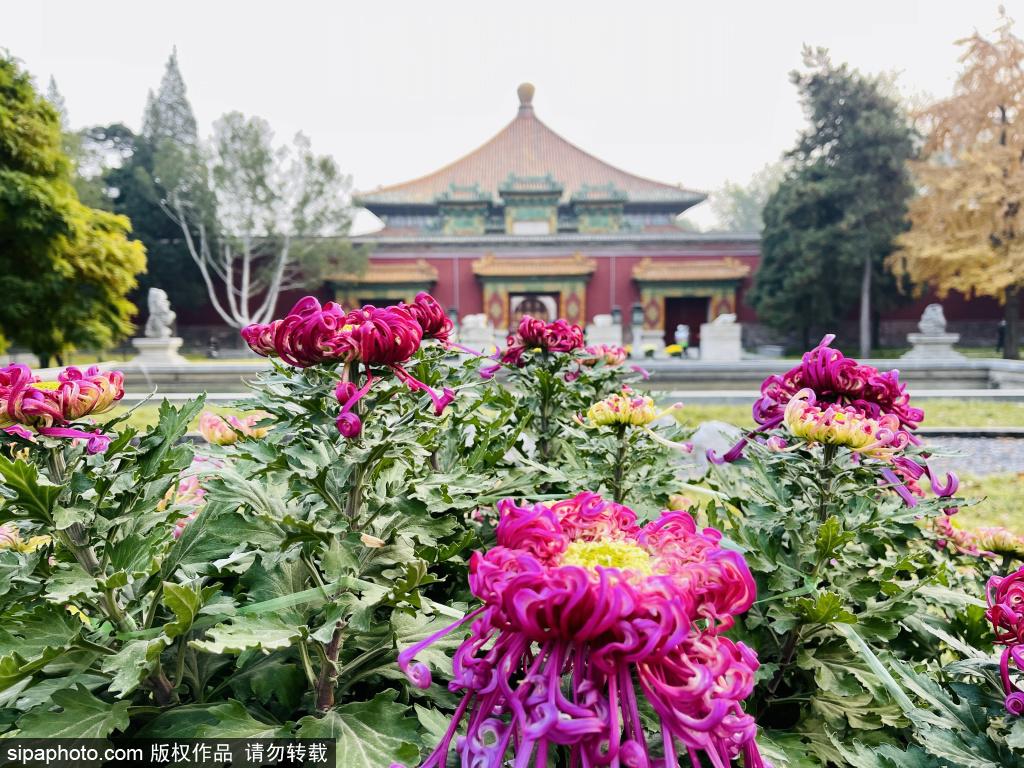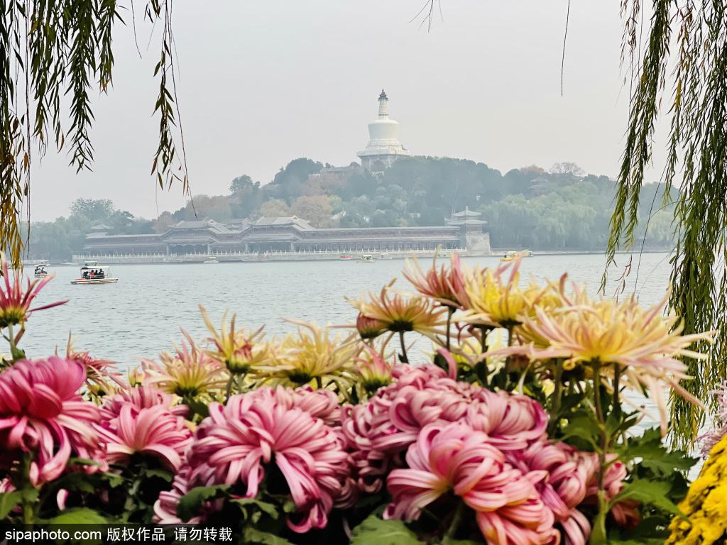 Beihai Park features the theme "Chrysanthemum Blossoms Abound in Autumn Fragrance," which beautifully integrates elements of traditional Chinese specimens and Kaifeng art chrysanthemums, relying on the historical sites of Chanfu Temple and the Wanfo Pavilion. The park presents a unique autumn scene where chrysanthemums cluster and bloom vibrantly between the palatial halls and exquisite towers, creating a stunning and fragrant display that captures the essence of the season.