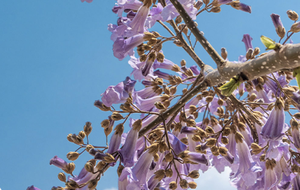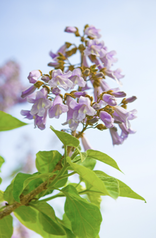 Chegongzhuang Dajie(St) in Beijing is lined with phoenix trees, and in spring, when they bloom, the trees are covered in vibrant flowers that resemble purple clouds descending to the earth, creating a stunning sight. The main characteristic of the phoenix tree is its light purple, bell-shaped flowers that form umbrella-like clusters, blooming before the leaves appear. The leaves have long petioles and pointed edges, while the bark is gray with deep earthy tones, making it easily recognizable.