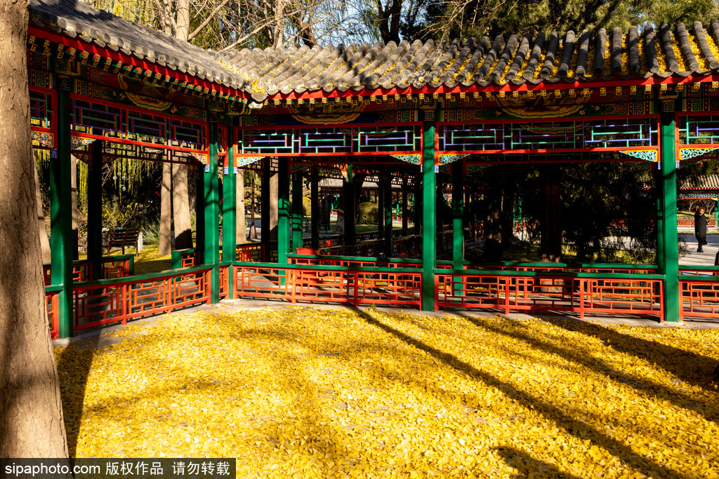 Zhongshan Park is also a wonderful place, with many varieties of ginkgo trees that reveal a unique beauty against the backdrop of autumn colors and the red walls and green tiles. These ginkgo trees are mainly concentrated in two areas, and in late autumn, they become the most brilliant splash of yellow beneath the red walls and glazed tiles.