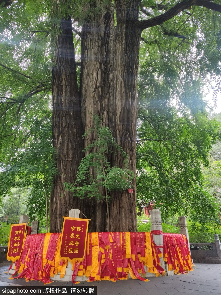 Additionally, there is a 500-year-old ancient ginkgo tree in the North Courtyard of the temple. This ginkgo tree has a unique shape, surrounded by nine smaller ginkgo trees around its trunk, resembling nine children gathered around their mother. This scenic view is known as "Nine Sons Embracing Mother" or "One Dragon and Nine Sons."