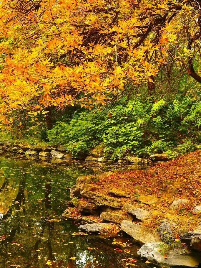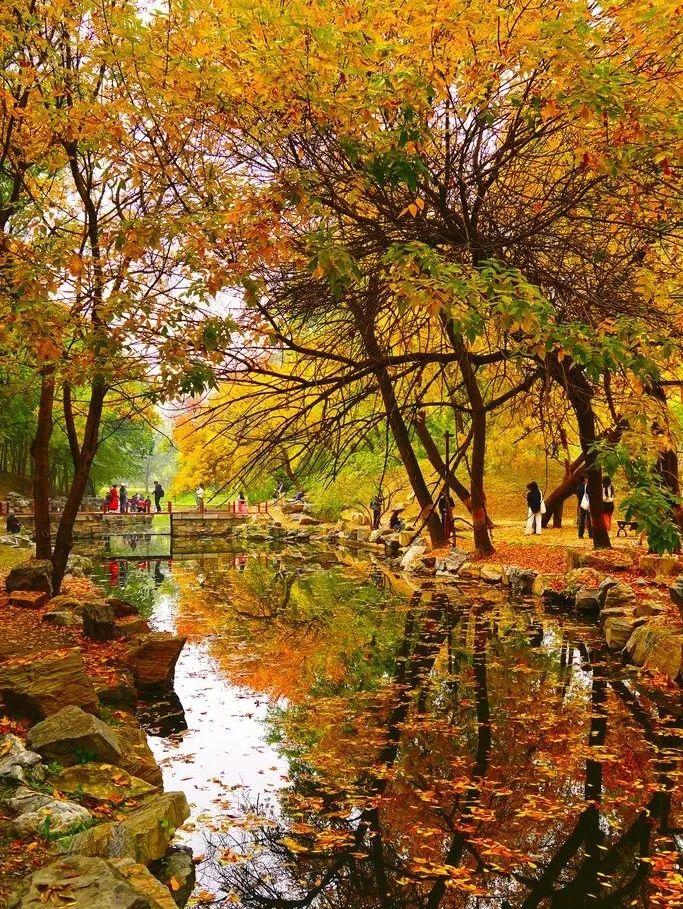 The Pingxiang Pavilion area in the Old Summer Palace has reached its prime autumn viewing period, attracting numerous visitors for sightseeing and photography. Golden leaves scatter on the ground and float on the lake's surface, creating a picturesque scene filled with the essence of autumn.