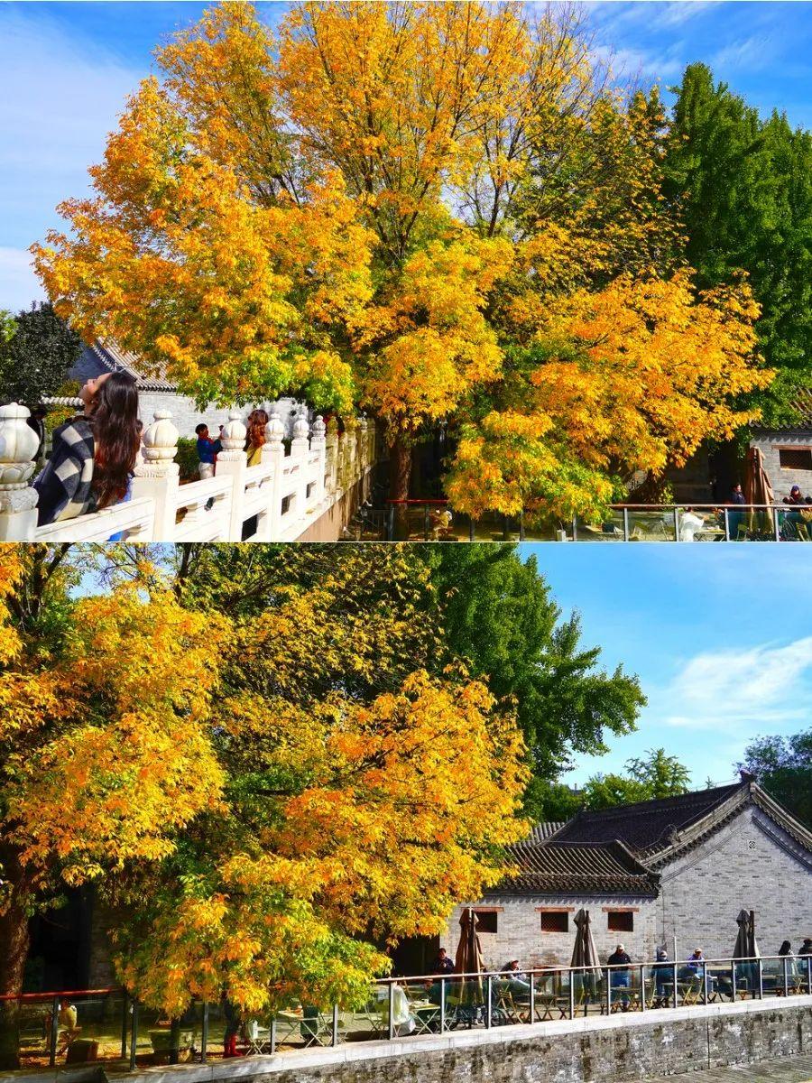 Near the Tonghui River Yuhe Ruins in Nanluoguxiang, a lone white wax tree stands adorned with golden leaves, attracting numerous visitors eager to capture the enchanting autumn vibes of the city. This tree, celebrated for its graceful growth, has been affectionately dubbed the "Divine Tree" by netizens.