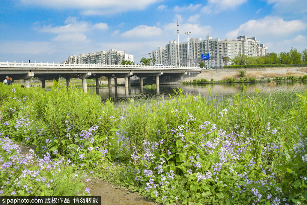 The February orchids bloom beautifully here, rivaling those in Temple of Heaven Park, while irises display their light purple petals. Daisies dot the grass, smiling beside the flowing Liangshui He, listening to its gentle currents as aquatic plants sway gracefully beneath the clear water.