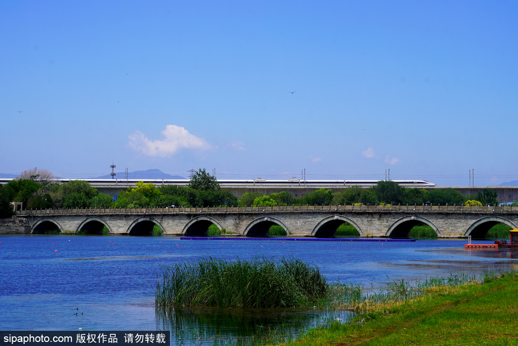 In the summer, the waters by Lugou Bridge shimmer in the sunlight, and the ancient stone roads bear witness to the long history of the bridge. The winding Xiaoyue Hu tells the story of the bridge’s present-day beauty. From the romantic and picturesque "Lugou Xiaoyue" (Lugou Moonrise) to the fiery days of the "July 7th Incident" during the Second Sino-Japanese War, Lugou Bridge holds an indelible place in the heart of every Chinese person, a symbol of both beauty and deep historical significance. The lions of Lugou Bridge "rank by seniority," with the youngest having been restored only in 1997, making them barely 20 years old, while the oldest lions date back to the Jin Dynasty and are over 800 years old. Walking along the 300-meter-long waterfront boardwalk by Xiaoyue Hu, visitors can enjoy the stunning views of the Hu, mountains, and the blending of water and shore, with the majestic Western Hills in the backdrop.