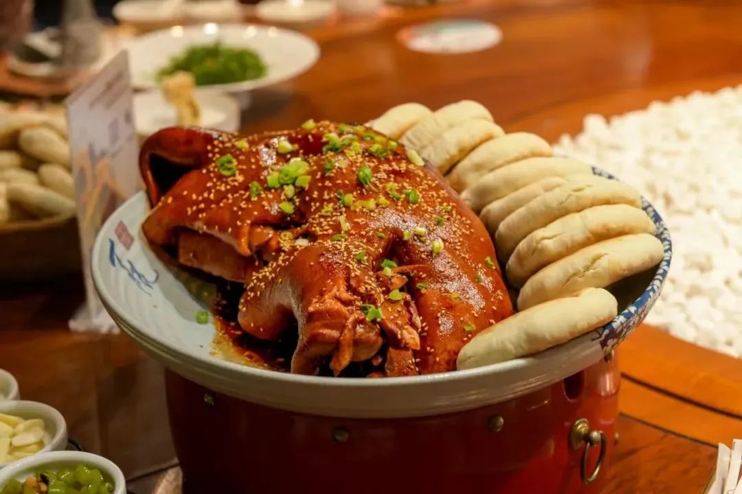 The intangible cultural heritage delicacy of "braised pig's face" from Shixia Village at Shi Guang Great Wall is seasoned with over twenty kinds of Chinese herbs and simmered in an old broth. The pig's face is rich yet not greasy, lean yet not woody, with a soft, glutinous, and mellow texture. When paired with Huoshao, it leaves a lingering aroma in the mouth.