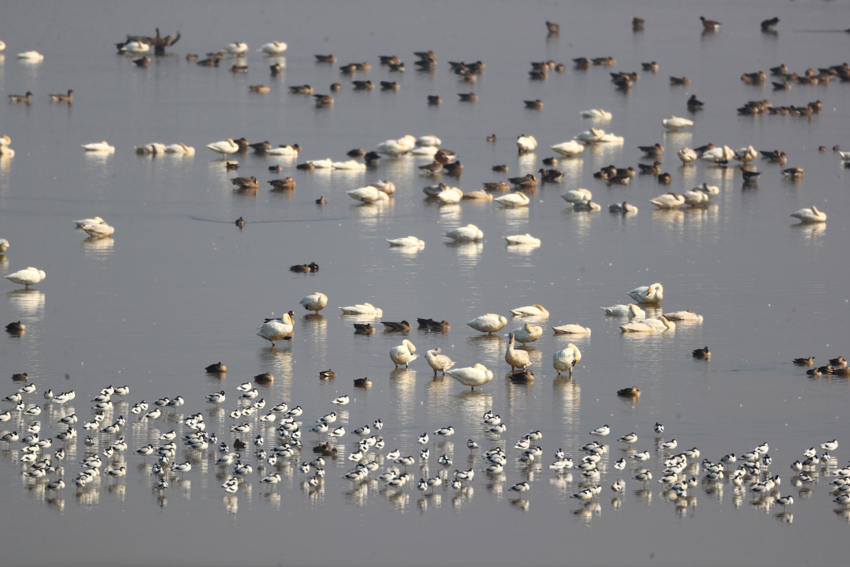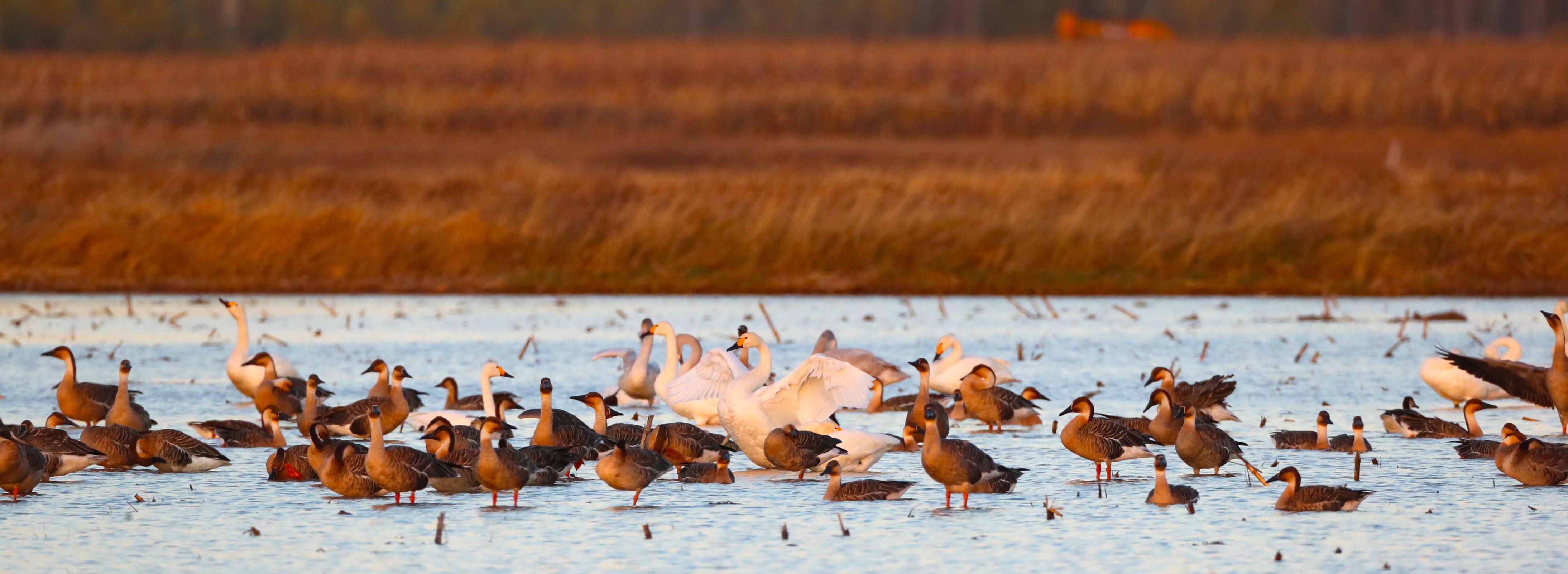 Recently, birds such as swans, geese, bean geese, red-breasted ducks, and avocets have landed and rested in large numbers in the reservoir area. It is expected that the peak of this year's migratory bird migration will be around November 15th.