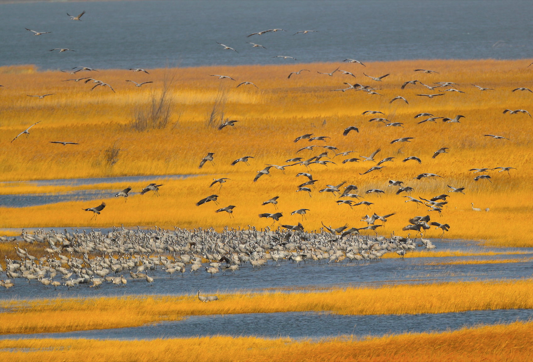 Currently, more than 20 species of wintering migratory birds, including grey cranes, gulls with red beaks, and Siberian silver gulls, have arrived. In the near future, a large number of wintering migratory birds will continue to arrive, including rare species such as black storks, swans, and red-billed gull, which will rest and refuel at Yeyahu Wetland before their long journey.