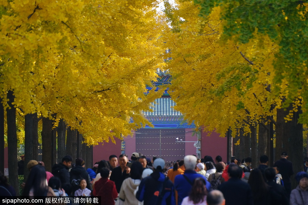 The Ginkgo Trees in Ditan Park is the top ginkgo trees in Beijing. It is currently at its peak of beauty, with golden leaves covering the entire tree. Looking down the ginkgo avenue from the red walls and gates, it feels like entering a fairy tale world. In addition to the golden ginkgo leaves, there are also flocks of pigeons and people of all ages exercising, creating a peaceful and lively atmosphere.